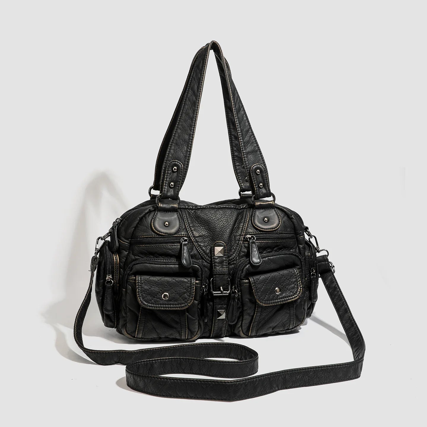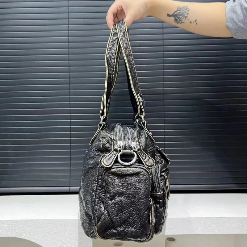 Grand sac à main de cours rétro multipoches à bandoulière Castille